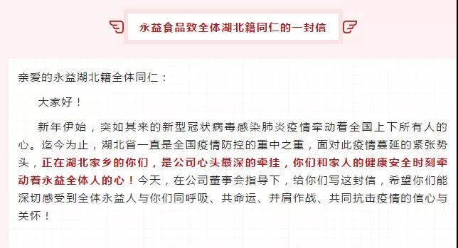 这封信,是东莞永益食品有限公司写给全体湖北籍员工的,信中写到: