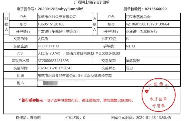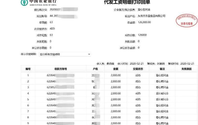 就在他和妻子感到茫然、甚至恐慌的时候,突然收到一条银行转账提醒:远在东莞的公司为他们分别打账2000元。