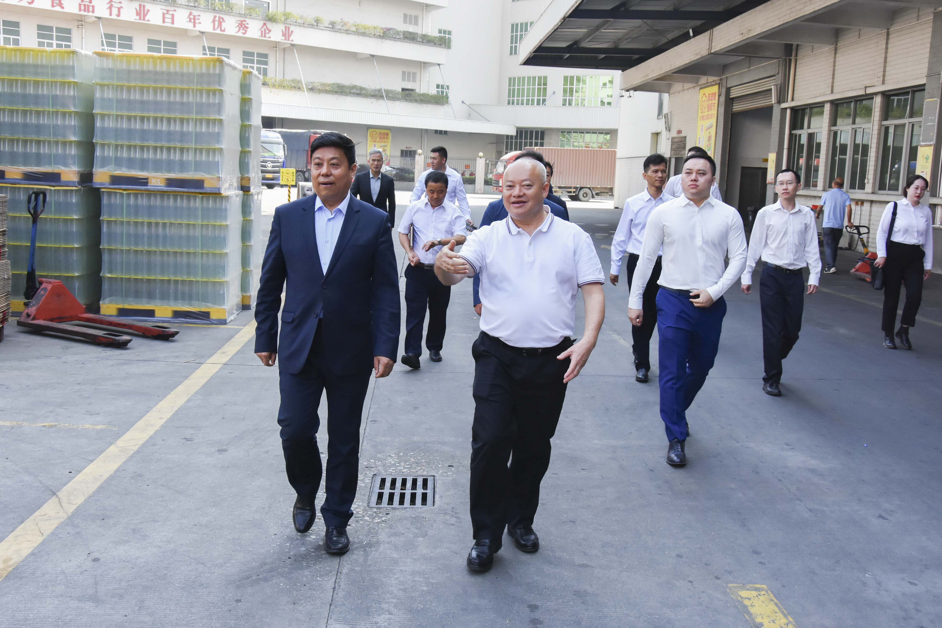 永益食品董事长王庆和、执行董事王嘉豪、监事简炼炜等人亲自接待远道而来的客人,并陪同参观东莞总部生产基地。