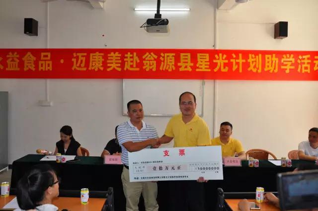 永益食品积极响应国家精准扶贫工作方向,努力发扬“为国家分担,为社会尽责”的使命,公司在董事会的指引下,在厚翁对口帮扶指挥部和翁源县各级领导的帮助下,于8月29日上午,由公司执行董事王嘉豪先生和副总经理郭良先生带队来到韶关翁源县开展“星光计划”助学活动。